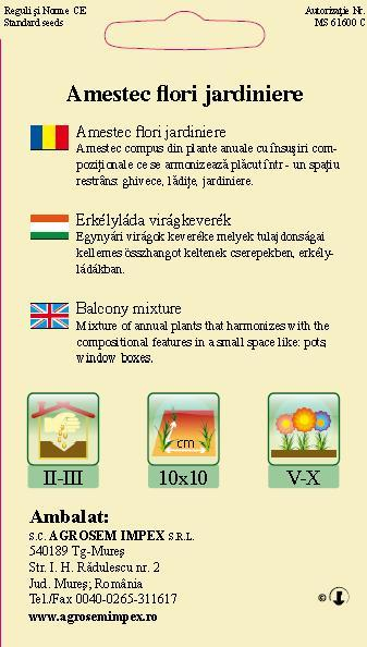 Amestecul conține semințe de plante anuale pentru jardiniere, de diferite culori. Acestea preferă locurile însorite, fără pretenții mari față de sol.