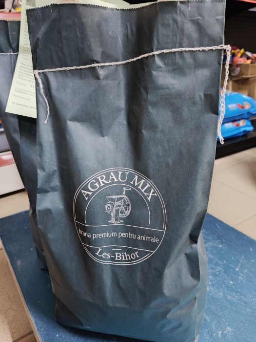 Recomandare de administrare: 2,5% din prezentul produs, porumb 40%, orz 19,5%, tarate 18%, srot de soia 14%, seminte de floarea soarelui 6%.