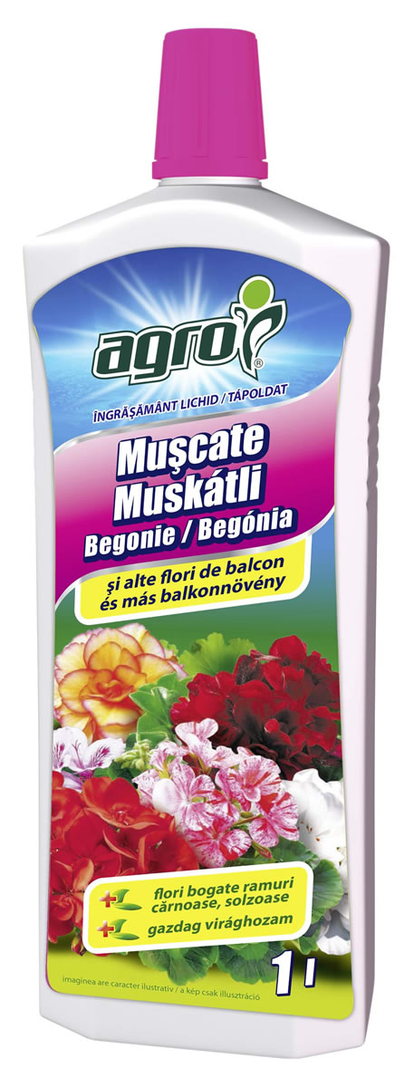 ⇒ Pentru fertilizarea muşcatelor, begoiilor şi a altor plante de balcon(petunia, verbina, fuchsia, lobelia)