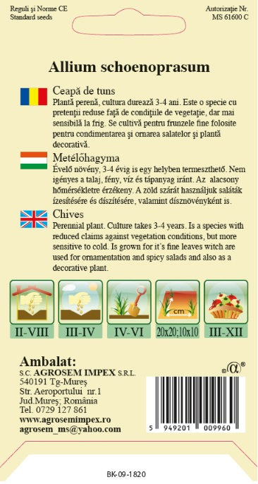 Este o specie cu pretenţii reduse faţă de condiţiile de vegetaţie, dar mai sensibilă la frig. Se cultivă pentru frunzele fine folosite pentru condimentarea şi ornarea salatelor şi plantă decorativă.